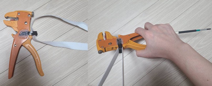 꼭 이 고무줄을 사용하기를 권장하는데, 넓적한 구조때문에 배선 탈피 후 내려놓아도 항상 같은 방향으로 알아서 멈추기 때문이다. 또한 위에서 언급한 드라이버를 놓지않고 사용하는데 최적인 방법이다. 수예용 고무줄은 폭이 너무 좁으면 복귀성이 떨어지기 때문에 20mm 이상으로 만드시길 권장한다.