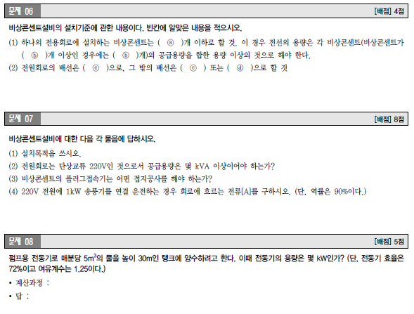 놀랍게도 생각보다 전기 관련 문제 난도가 높지 않아, 기능장 필답 수준으로 풀 수 있는 문제가 평균 5~6문제는 된다. 계산 문제는 틀리면 공부 아예 안 한 수준인 정도다.