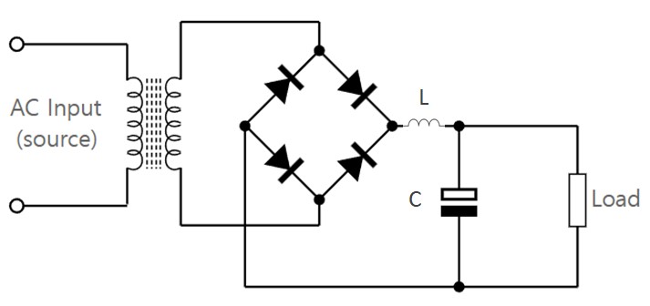 4. 다음 정류회로에서 인덕터(L)와 커패시터(C)를 설치하는 이유를 쓰시오