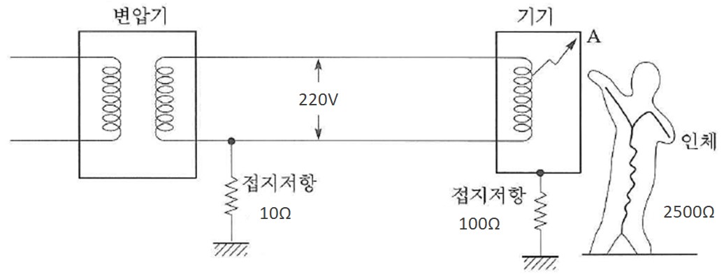 1) 기기의 외함에 인체가 접촉하고 있지 않을 경우의 지락전류[A]와 대지전압[v]을 계산하시오